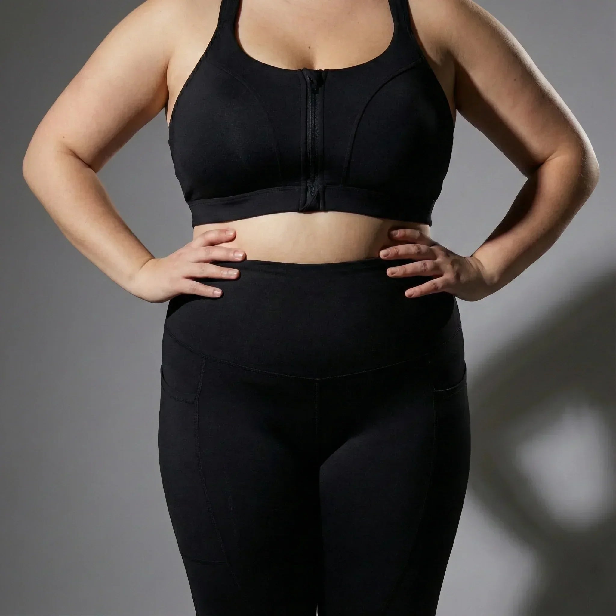 - Easy Front Zipper: Features a secure zipper closure with internal hooks for a stay-put fit and a zipper guard to prevent chafing.