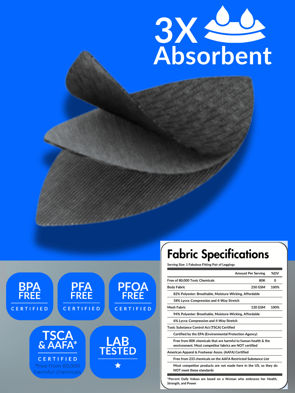 - All fabrics are free of BPA, PFOA, and PFAS.
