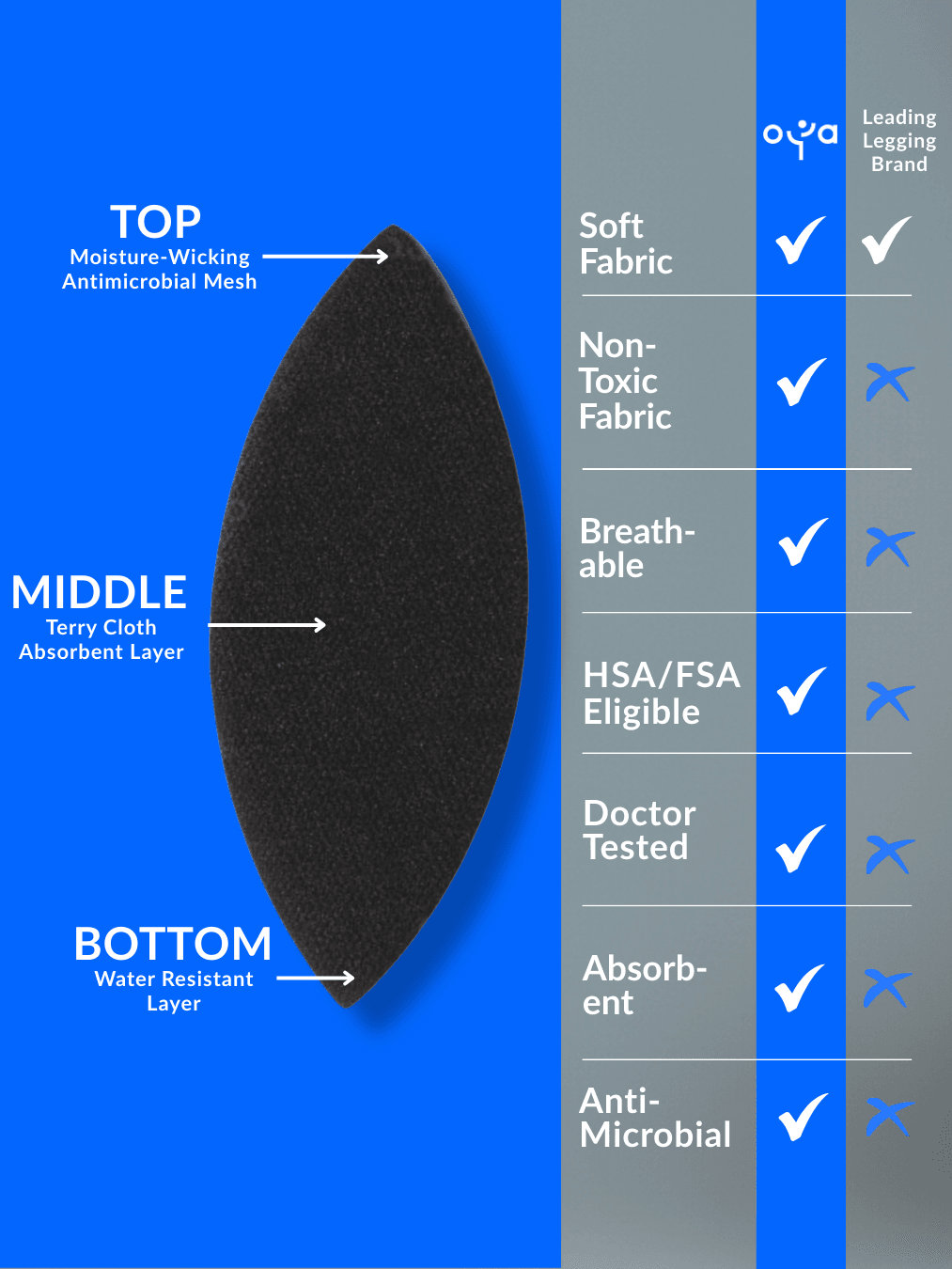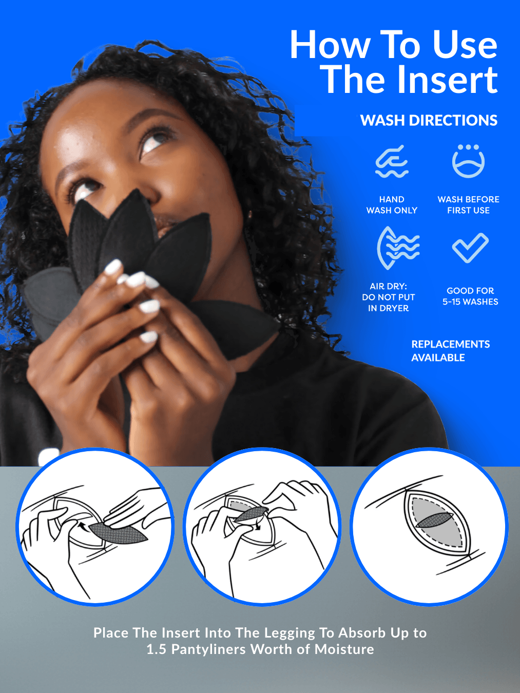 Moisture Control Technology: Removable insert absorbs excess moisture, keeping you clean and dry during any activity.