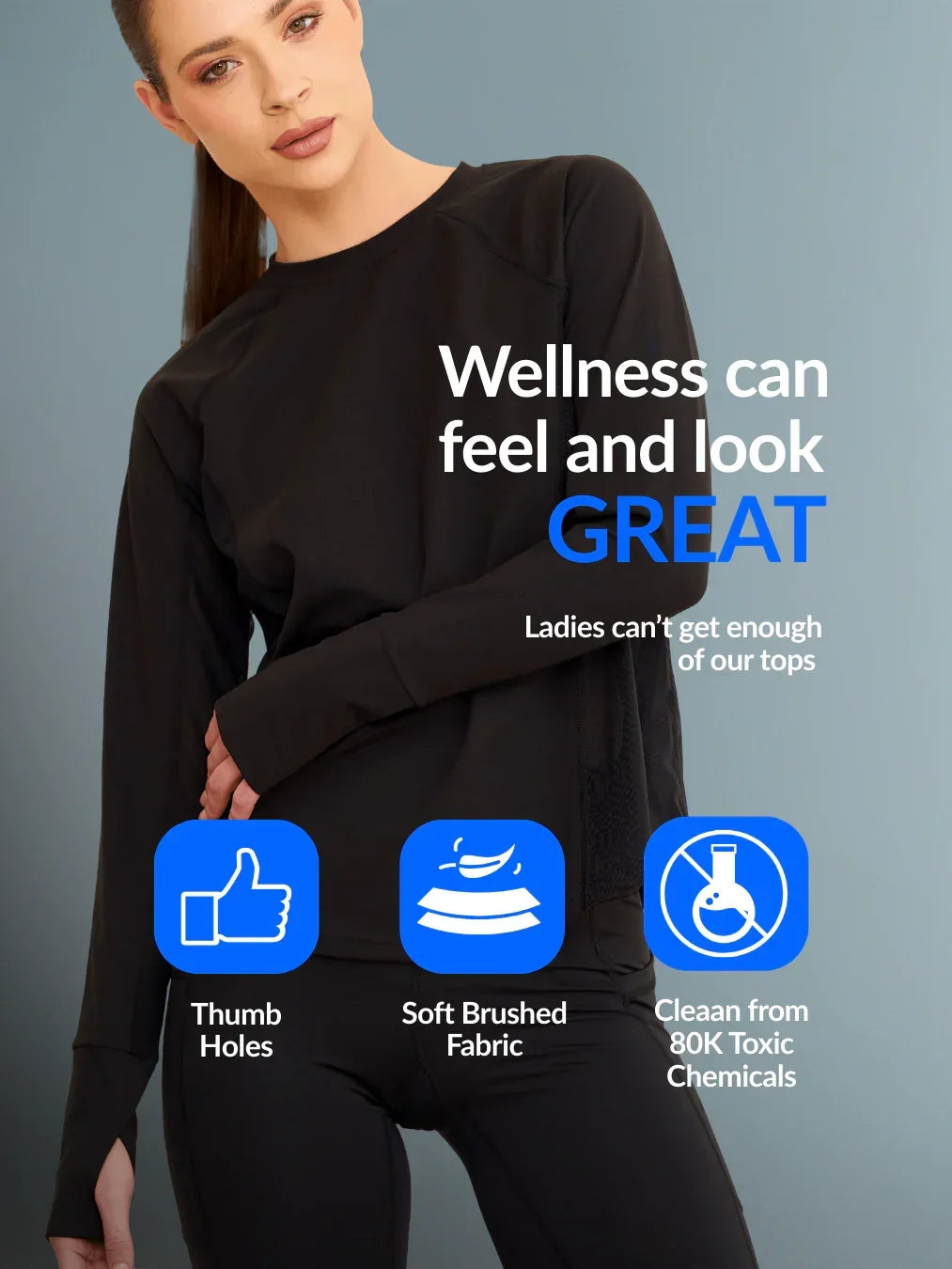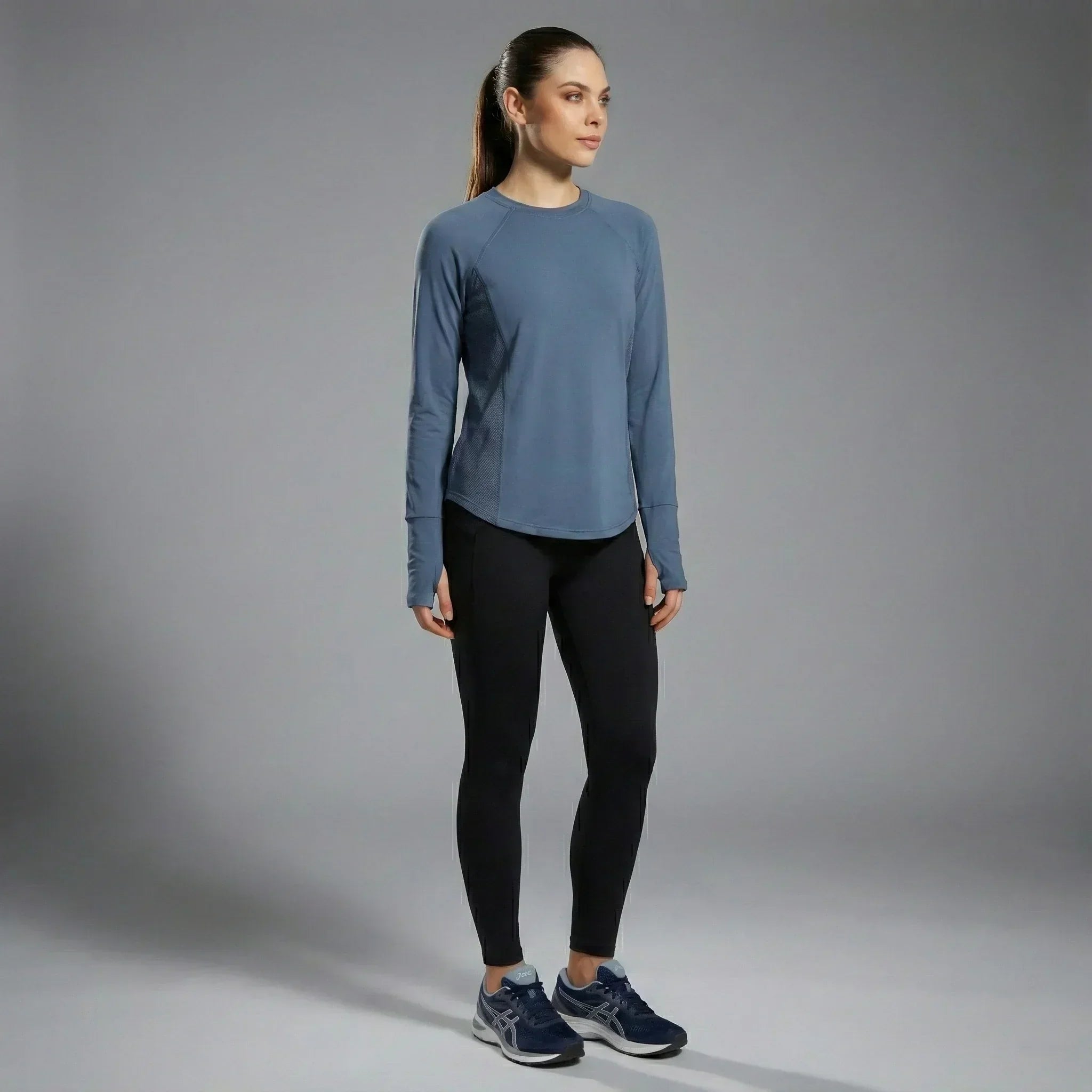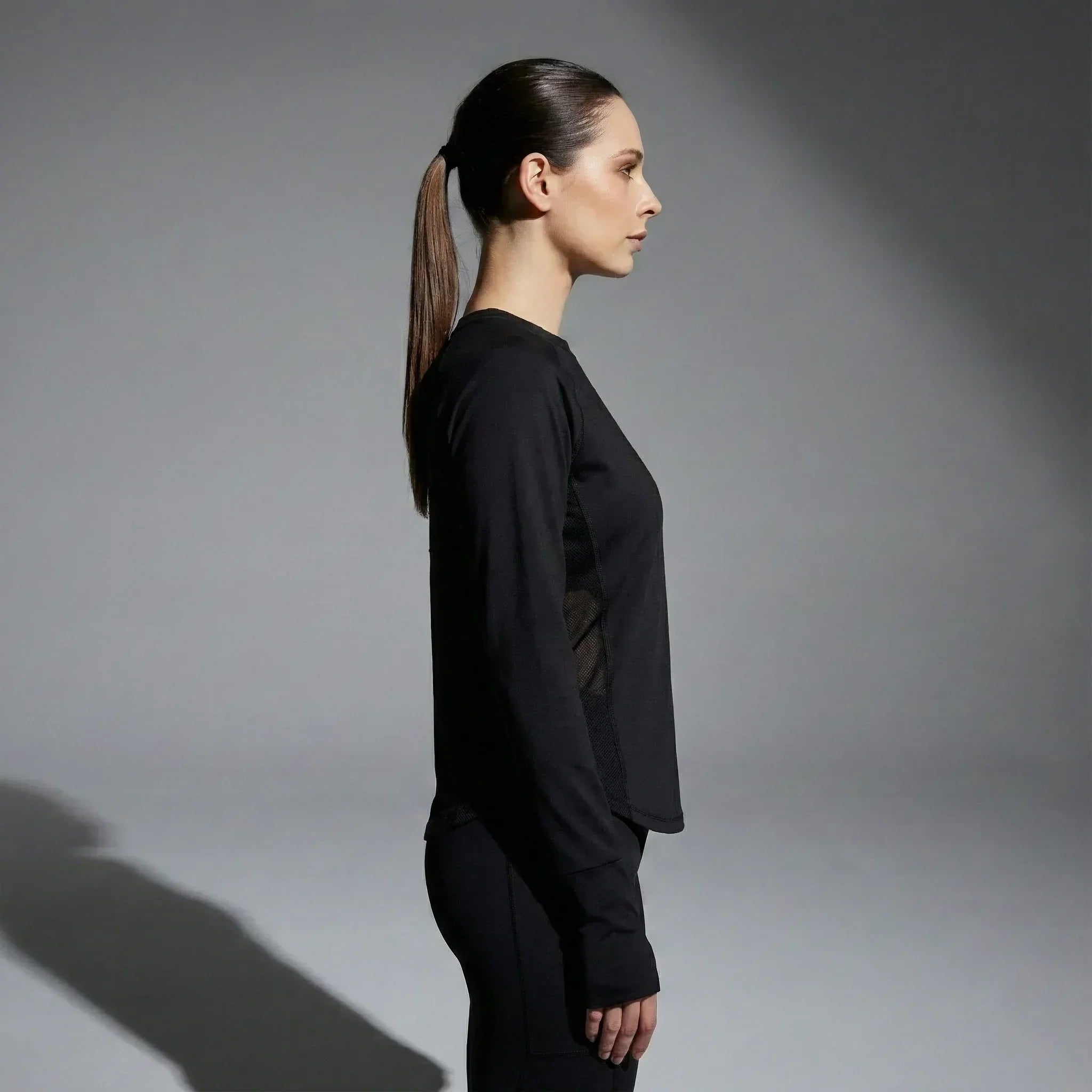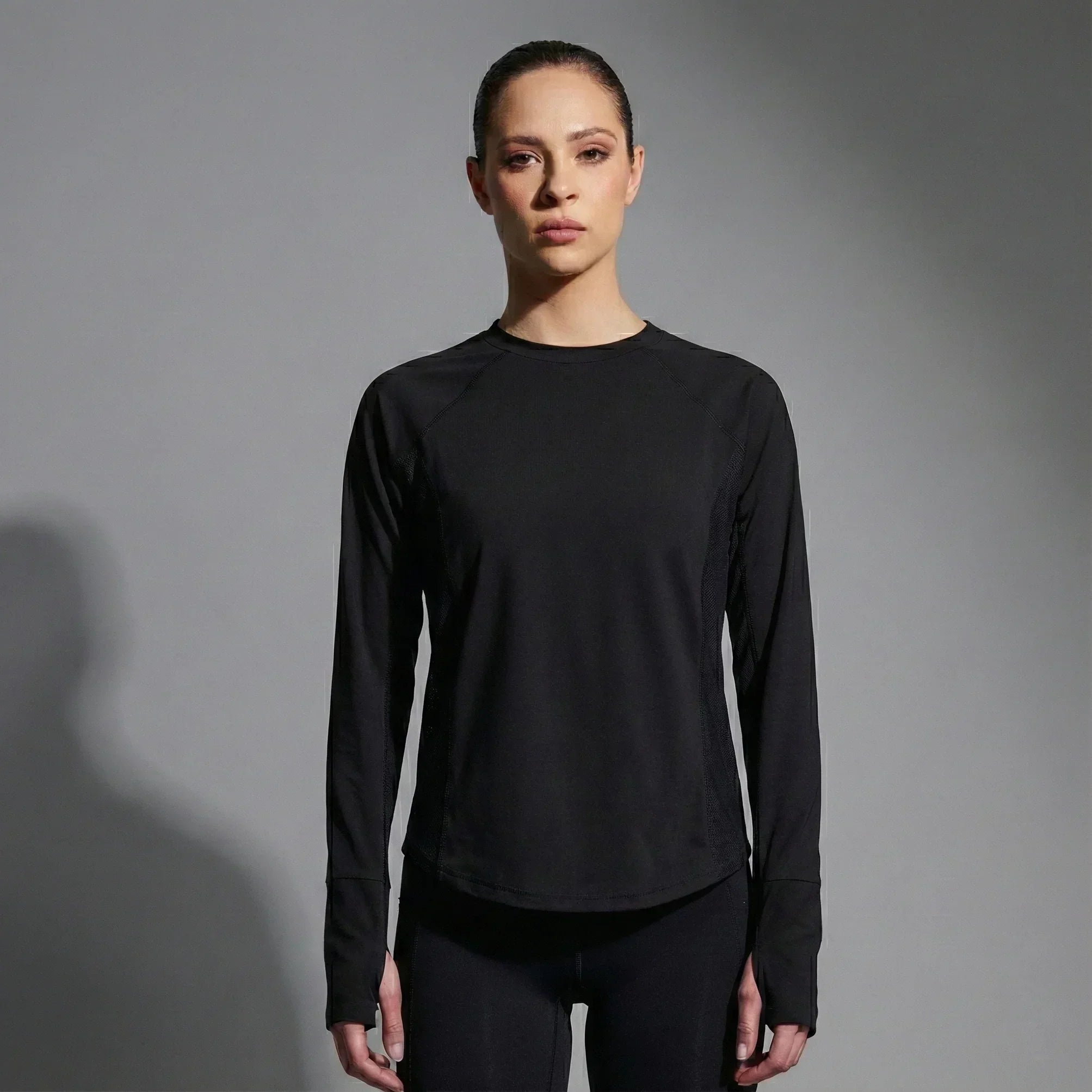 This shirt combines moisture-wicking, breathable fabrics with a relaxed fit to maximize airflow and comfort during movement. The ventilated panels release heat while the smooth seams and hypoallergenic materials minimize skin irritation. Hidden thumbholes and a rounded hem add functional details that make every activity more comfortable.